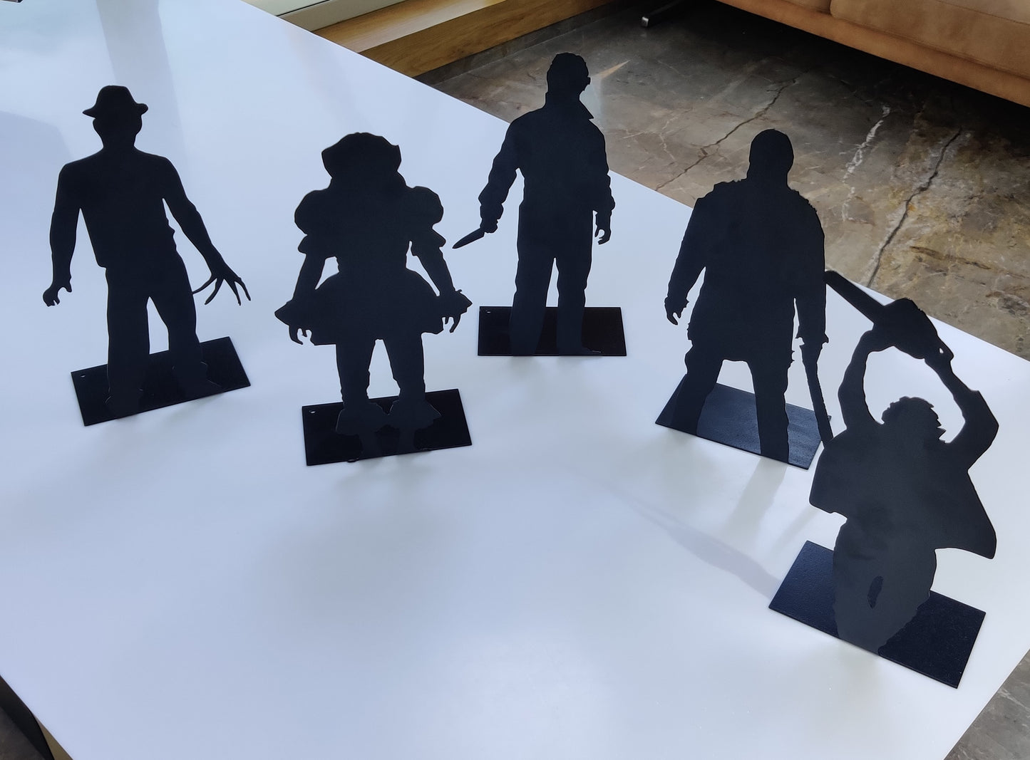 These are the originals HORROR characters that you can use to decor a shelf or center table or window! We offer custom designs for Halloween with stand or with stake, anything you want.