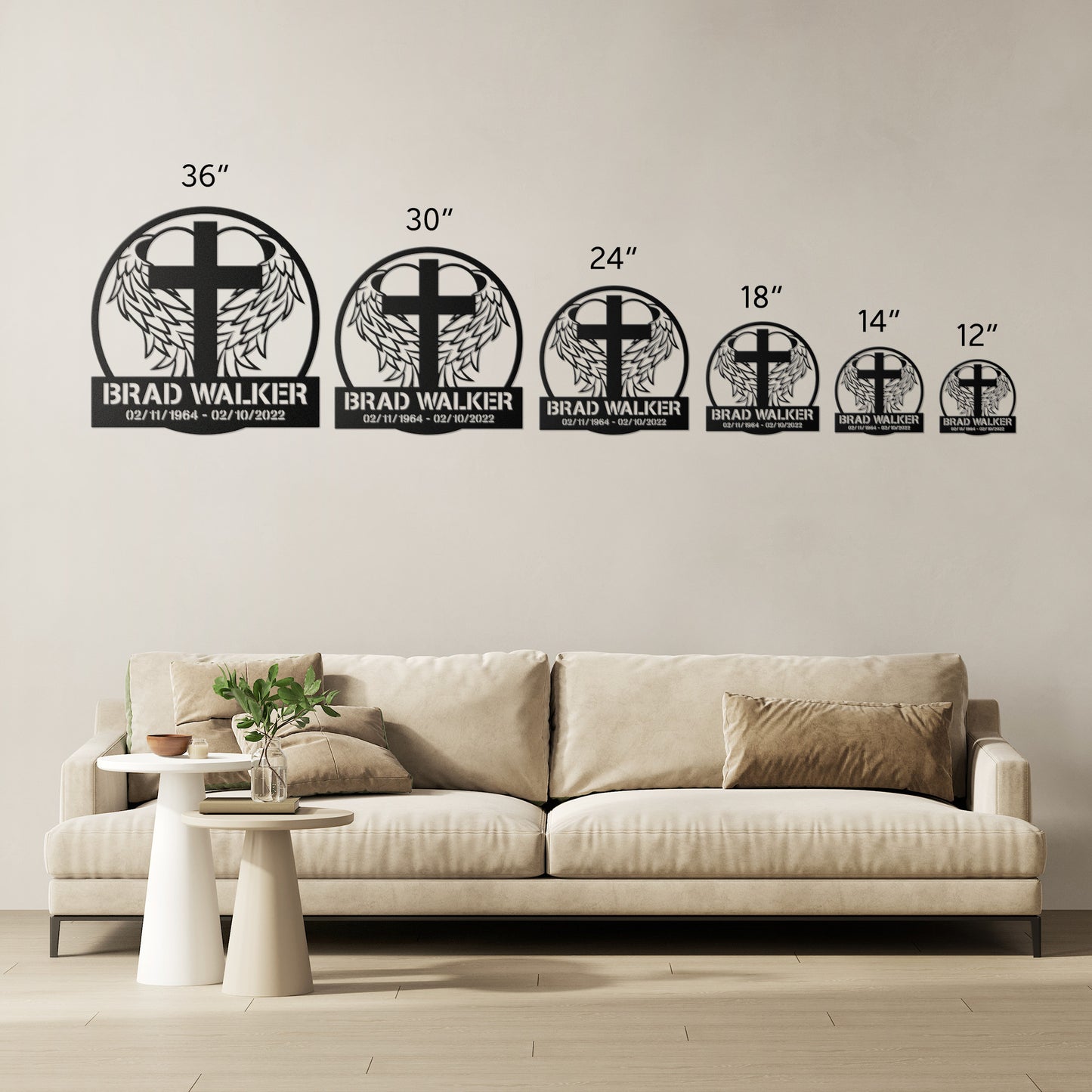 • 6 Sizes - 36", 30", 24", 18", 14", 12" *Selected size is based on the maximum height or width of the sign depending on physical orientation