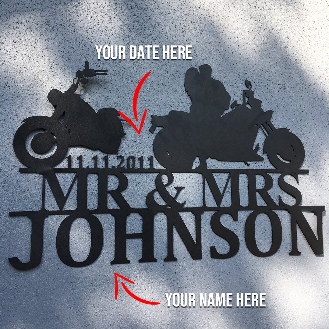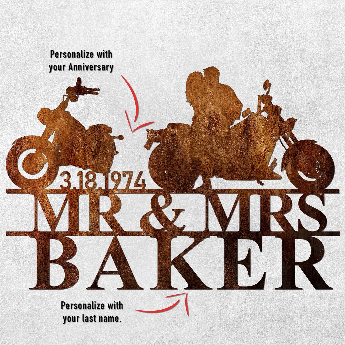PERSONALIZE this amazing Happily Married Biker Couple Metal Wall Art - 100% Made to Order in the USA! 🇺🇸