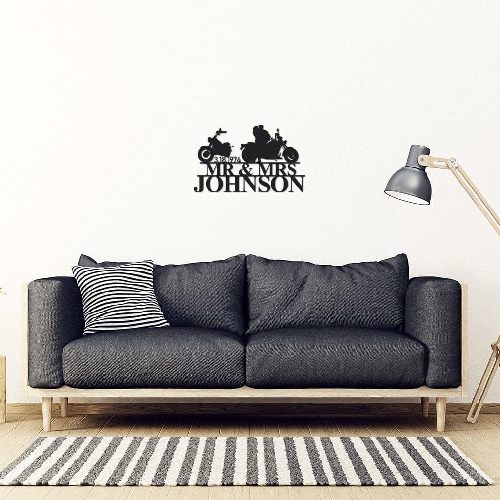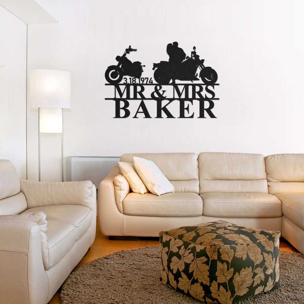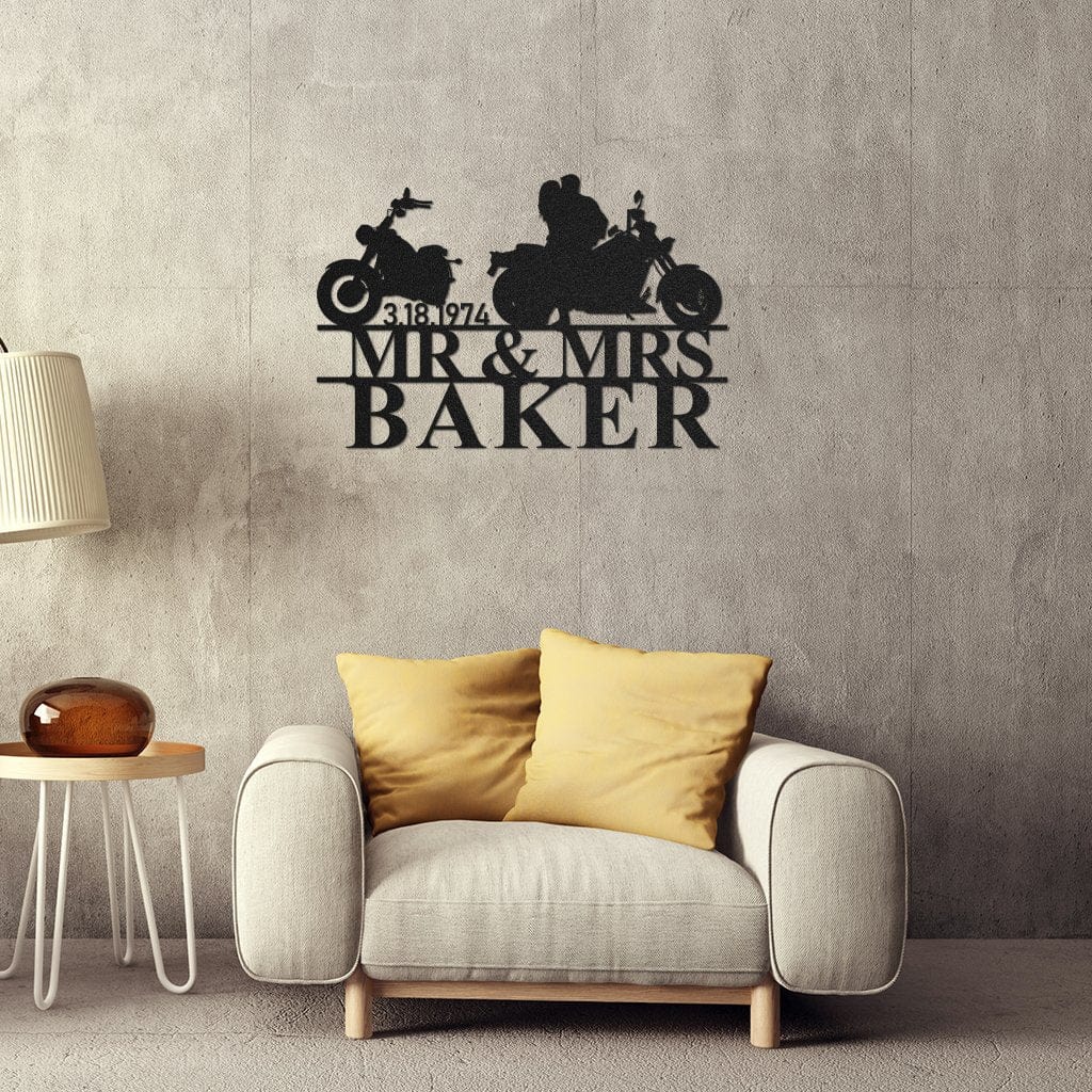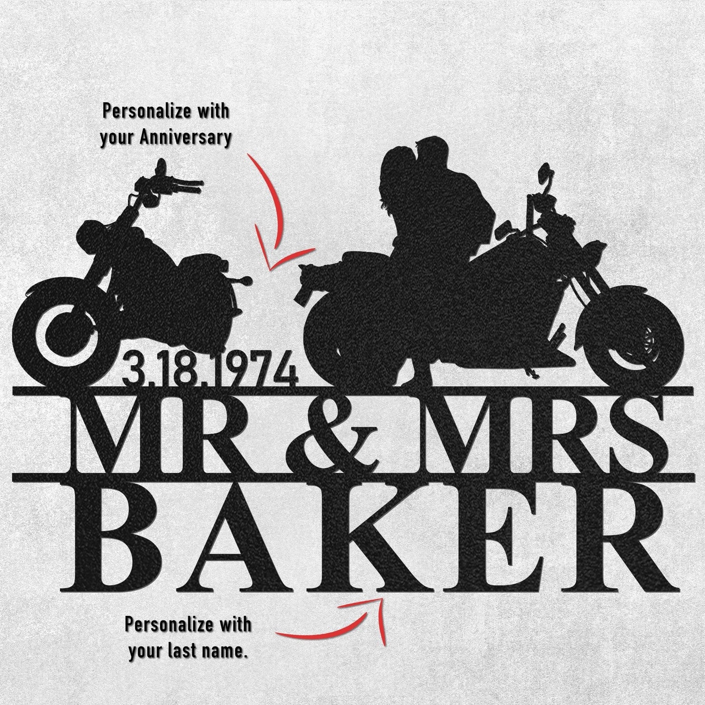 Happily Married Biker Couple - Two Bikes - PERSONALIZED Metal Wall Art (🇺🇸Made In The USA)