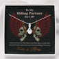 Melt her heart with this ALLURING BEAUTY necklace gift! The petite ribbon shaped pendant is finished with 14K white gold over stainless steel, and is embellished with dainty clear crystals surrounded by a sparkling 7mm round cut Cubic Zirconia.