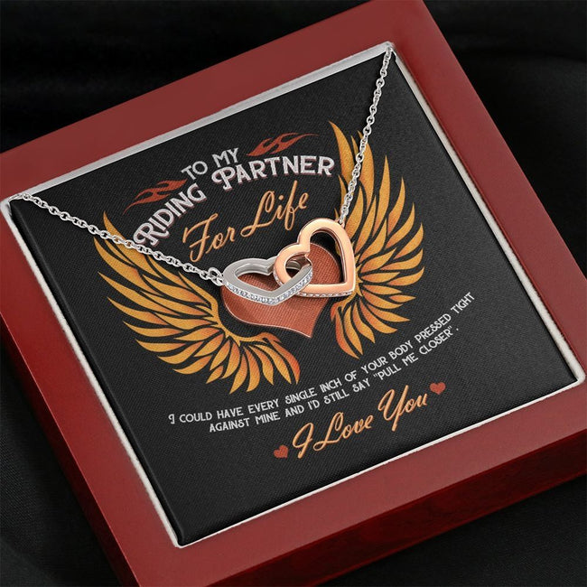 Two hearts embellished with Cubic Zirconia stones, interlocked together as a symbol of never-ending love. Made with high quality polished surgical steel. Cable chain measures 18 inches with a 4 inch extension, and fastens with a lobster clasp.