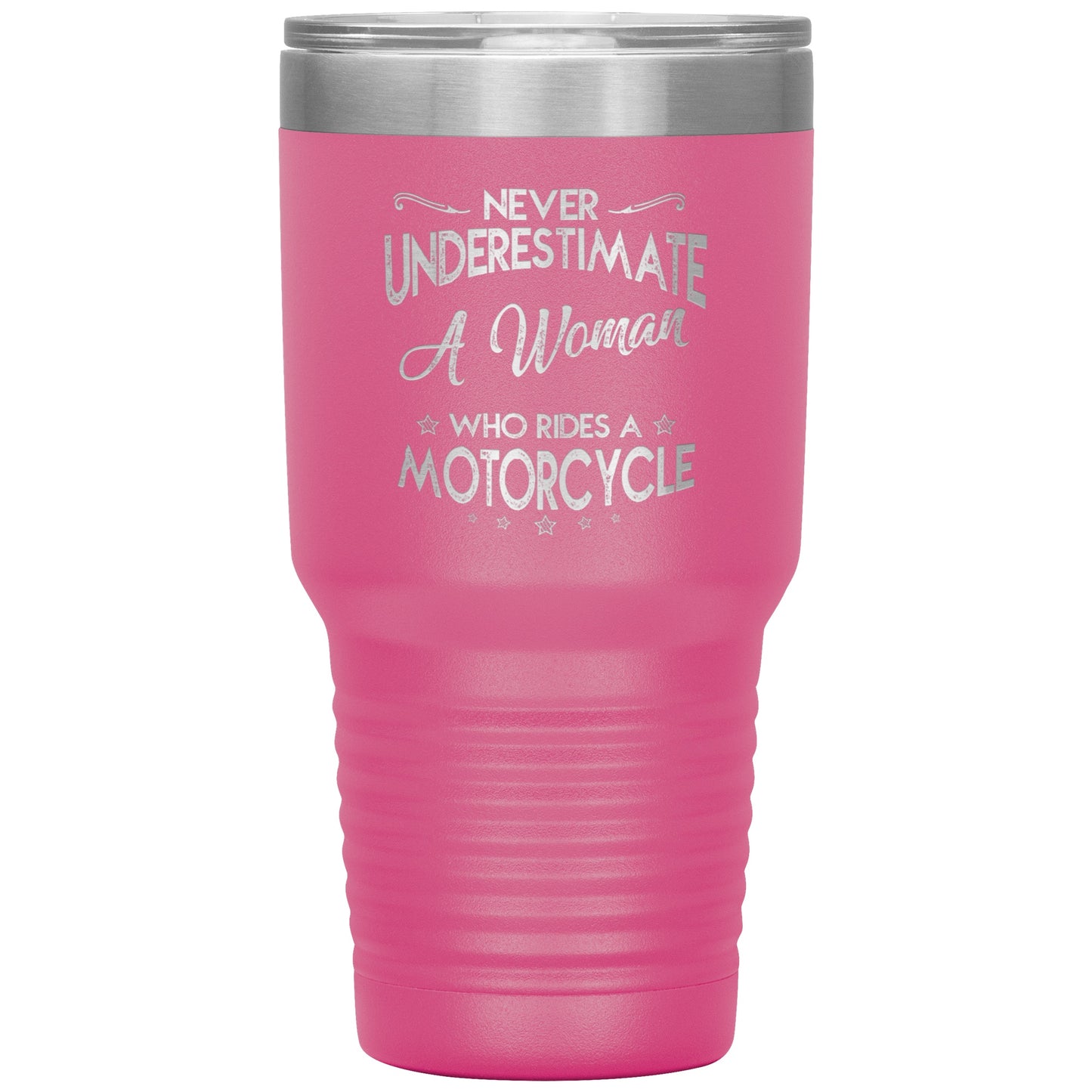 30oz. Tumblers feature stainless steel double-wall construction, vacuum insulated for 2X cold and heat retention compared to glass or plastic containers, removable clear lid and textured sweat-free powdercoat.