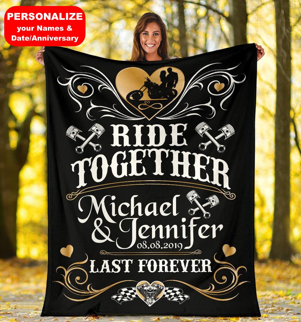 PERSONALIZED Ride Together Last Forever Premium Fleece Blanket