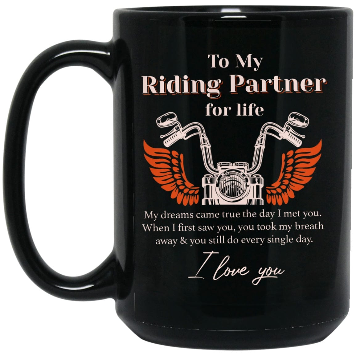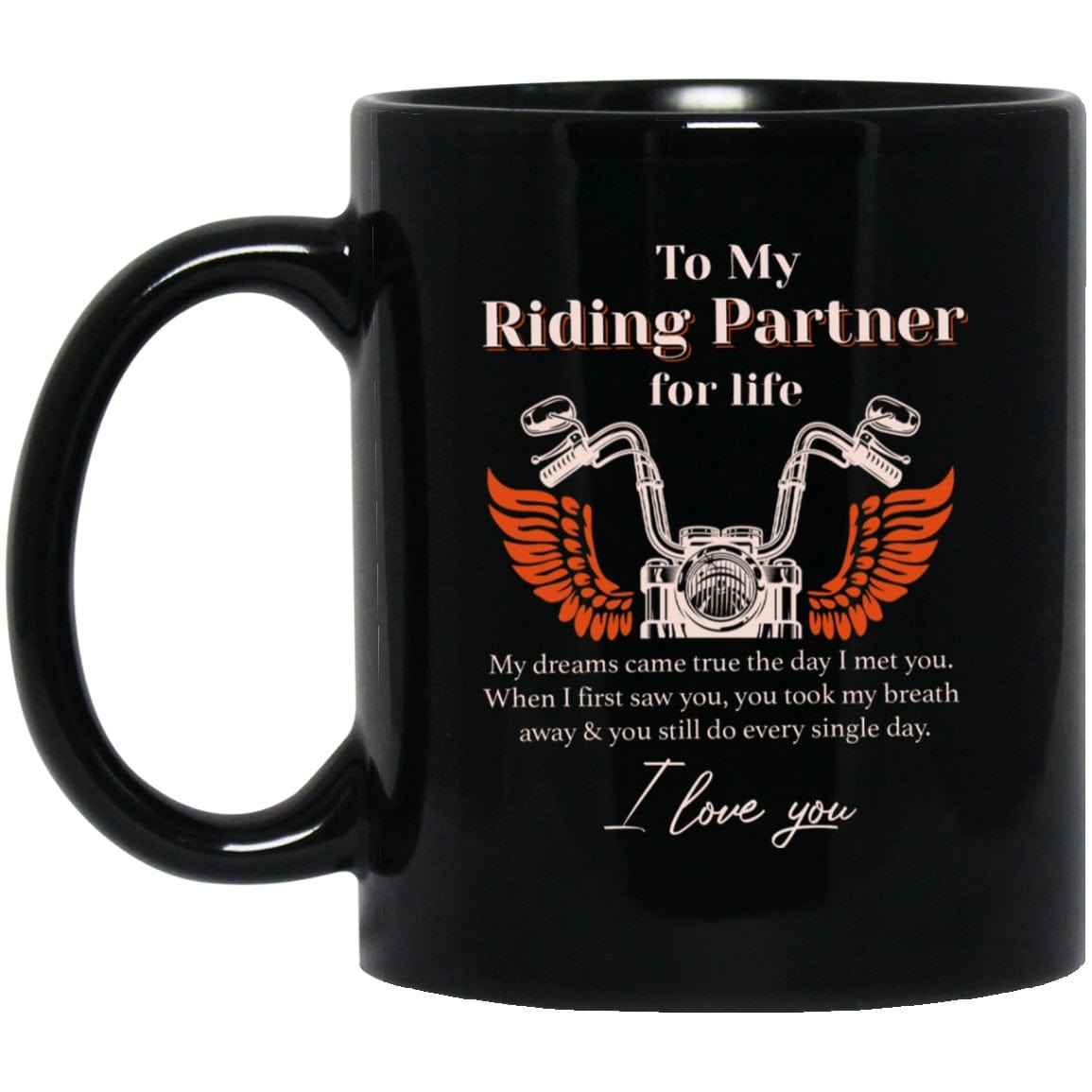 The "To My Riding Partner, My Dreams - Black Mug's" are the best way to enjoy your favorite brew.