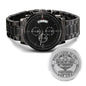 A personalized gift that can withstand constant use, this Engraved Design Black Chronograph Watch is the perfect gift for all the special men in your life. A thoughtful groomsmen gift, an anniversary memento, or a long-lasting keepsake for Father’s Day - it's a versatile piece sure to warm hearts and create smiles. Featuring a three-dial face, calendar function, and luxury pointer in a water-resistant and scratch-proof vessel.